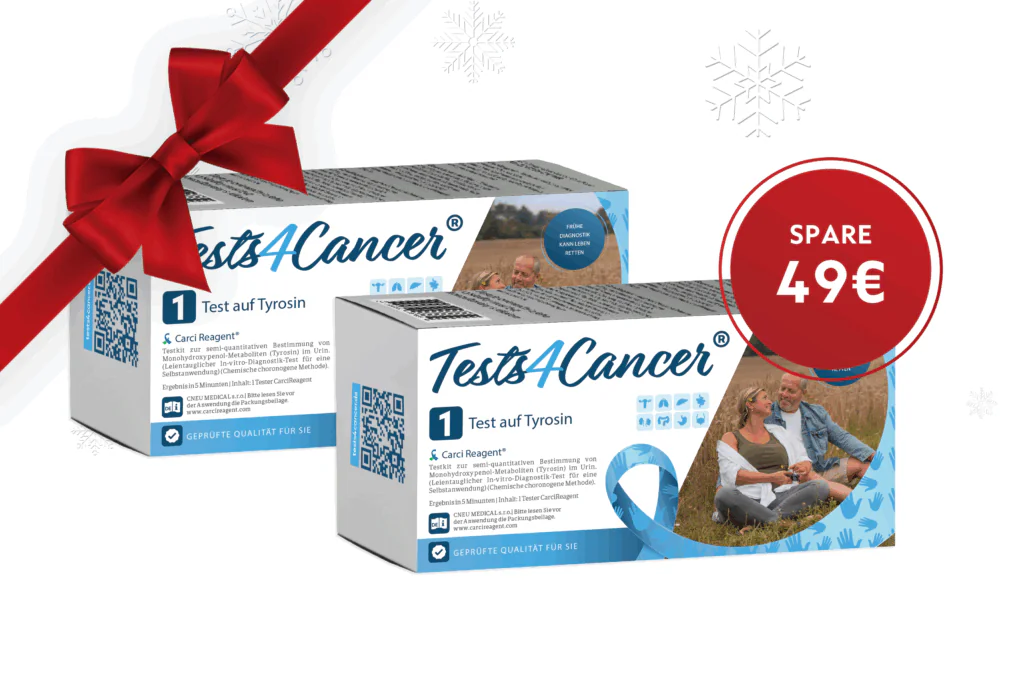 Unser medizinischer Früherkennungstest für zu Hause analysiert den Biomarker Tyrosin im Urin – und liefert frühzeitig Hinweise auf Tumore und andere schwerwiegende Gesundheitsprobleme. Einfach, diskret und wissenschaftlich fundiert.*